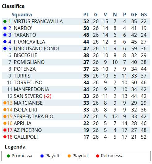 Il Gallipoli attualmente è ultimo in classifica.