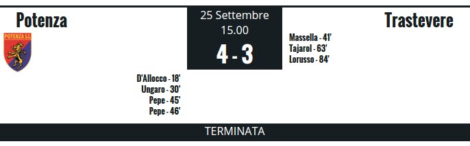 Il Potenza Calcio di nuovo protagonista in questa quarta giornata di Campionato della Serie D.