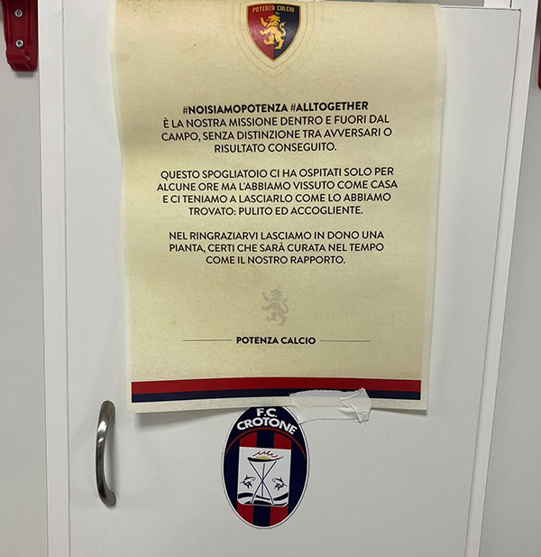 La squadra del Potenza ha, infatti, lasciato nello spogliatoio dello stadio un biglietto con su scritto: