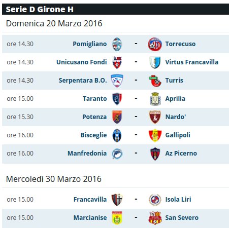 Ecco di seguito tutte le partite della serie D girone H della 28esima giornata e la classifica.
