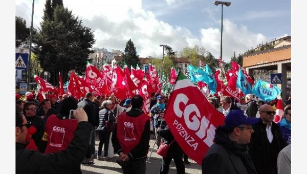 Questa mattina un corteo di manifestanti, tra politici e lavoratori, ha invaso il tragitto che da viale Firenze porta in via Verrastro (davanti al palazzo dove ha sede la Regione Basilicata) aderendo alla “Marcia per il Lavoro” organizzata da Cgil Cisl e Uil .