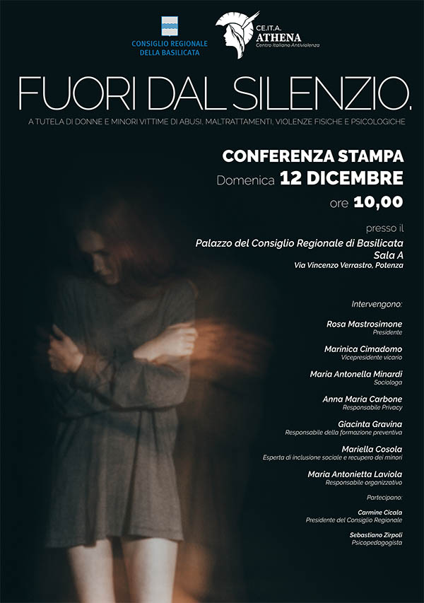 Domenica 12 Dicembre 2021, alle ore 10:00 presso il Palazzo del Consiglio Regionale di Basilicata – sala A, in via Vincenzo Verrastro a Potenza sarà presentata alla comunità lucana il Centro italiano antiviolenza CE.IT.A -ATHENA.