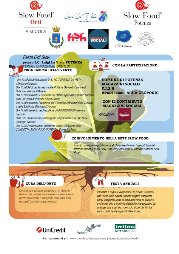Nato dagli Edible School Gardens di Slow Food USA e approdato in Italia nel 2004, l’Orto Slow Food è il principale strumento di educazione alimentare, del gusto e ambientale dell’Associazione, e con la Festa degli Orti sancisce un momento simbolico importante per studenti, insegnanti, genitori, nonni e produttori locali.