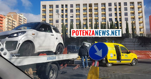 Poco fa a Potenza, nei pressi della nuova rotatoria in costruzione a Poggio Tre Galli, una macchina si è completamente ribaltata piegando anche il segnale di obbligo.