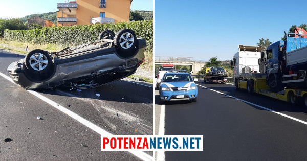 Incidente Potenza-Melfi: auto ribaltata! Polizia stradale sul posto. Le foto
