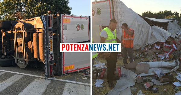 Nella tarda serata di oggi, sulla Potenza–Melfi,un camion si è ribaltato presso l’uscita di Melfi Centro.