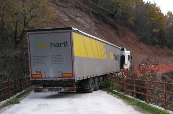 Quindi a quanto pare non sono stati ben interpretati i segnali che indicavano la chiusura e di conseguenza senza le barriere i due autisti hanno avuto facile accesso alla strada per qualche chilometro, bloccandosi poi naturalmente all’uscita di un ponte ai confini con Savoia e andando a finire direttamente in un cantiere dove ci sono lavori in corso per rimuovere una frana.