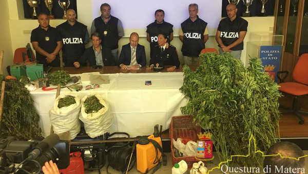 Sono stati gli agenti della squadra mobile di Matera, che dopo aver pedinato e sorvegliato i due coltivatori albanesi, in contrada “Marinella” a Metaponto, hanno poi proceduto ad arrestarli con l’accusa di coltivazione abusiva di sostanze stupefacenti più l’aggravante dell’ingente quantitativo.