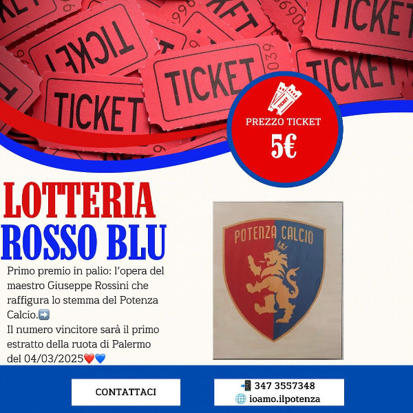 I biglietti, disponibili da oggi al costo di 5€, vanno dal numero 1 al 90 e si posso acquistare esclusivamente contattandomi via WhatsApp per verificare la disponibilità dei numeri che sono rimasti ancora invenduti.