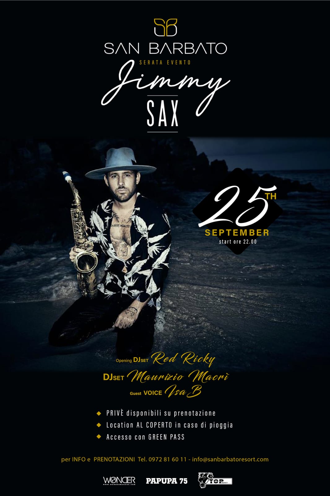 Proprio al San Barbato Jimmy Sax, grande sassofonista in vetta alle classifiche di tutto il mondo, vi aspetta il 25 Settembre alle ore 22:00 con uno spettacolo ricco di pathos ed energia.