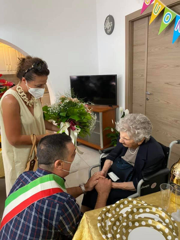 In dono per lei una targa con la quale sono stati formulati i migliori auguri da parte di tutta la cittadinanza.