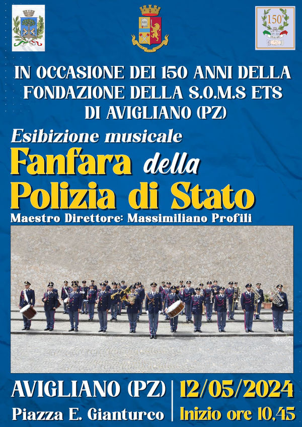 Domenica 12 maggio 2024, la Fanfara della Polizia di Stato sarà in questa provincia per esibirsi in concerto come da programma di seguito indicato.