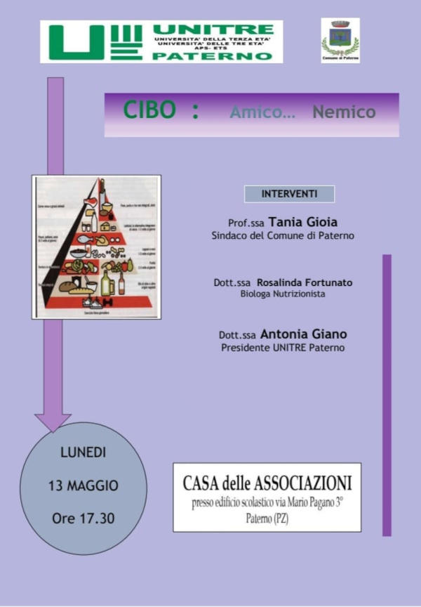 La Unitre di Paterno continua con i dibattiti dedicati alla corretta educazione alimentare. I dettagli dell’appuntamento in programma