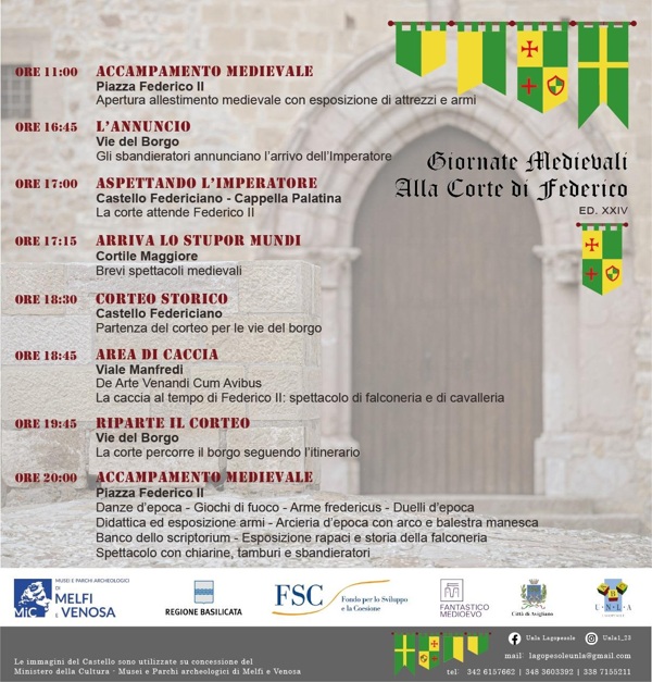 Quest’anno l’evento è tra quelli compresi nel programma di FANTASTICO MEDIOEVO che è la grande iniziativa di livello nazionale che vuole promuovere e rilanciare turisticamente i luoghi di Federico II in Basilicata anche attraverso la promozione del castello di Lagopesole e del nostro evento.