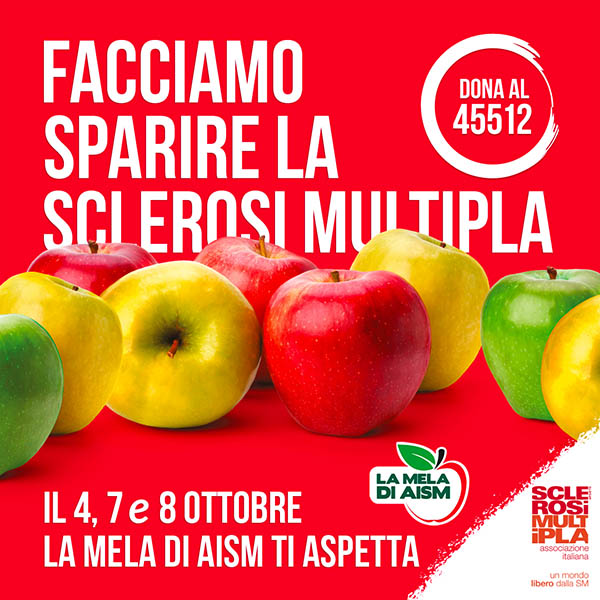 “La Mela di AISM” è l’evento di informazione, di sensibilizzazione e di raccolta fondi promosso dall’Associazione Italiana Sclerosi Multipla che si svolge sotto l’Alto Patronato del Presidente della Repubblica.