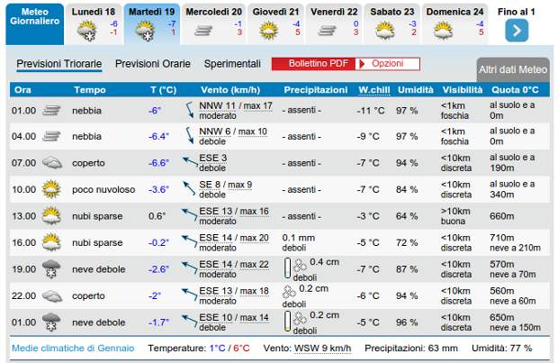 In base agli ultimi aggiornamenti meteorologici nelle previsioni viene evidenziato che questa notte a Potenza la temperatura scenderà ben al di sotto dello zero (probabilmente si toccheranno i -7 gradi!) e domani in serata potrebbe riaffacciarsi sul capoluogo qualche fiocco di neve.