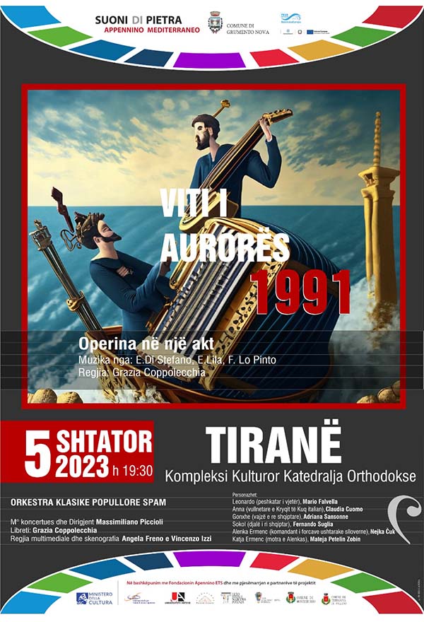 Il 5 settembre il Festival Suoni di Pietra Appennino Mediterraneo fa tappa in Albania a Tirana e il 7 settembre in Slovenia a Capodistria con l’Operina “L’anno dell’aurora-1991” realizzata dall’Accademia che si è tenuta dal 31 luglio al 5 agosto nel Comune di Grumento Nova.