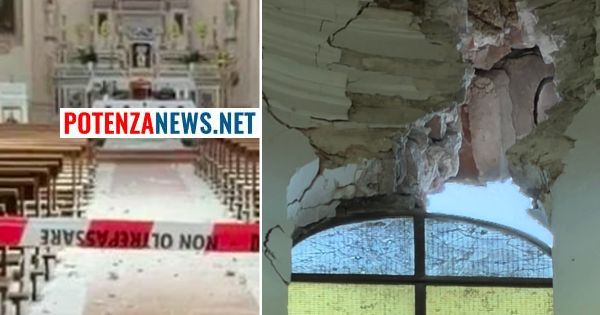 Questa mattina è stato il parroco don Enio De Mare a verificare quanto accaduto: calcinacci e intonaco sono finiti all’interno delle navate.