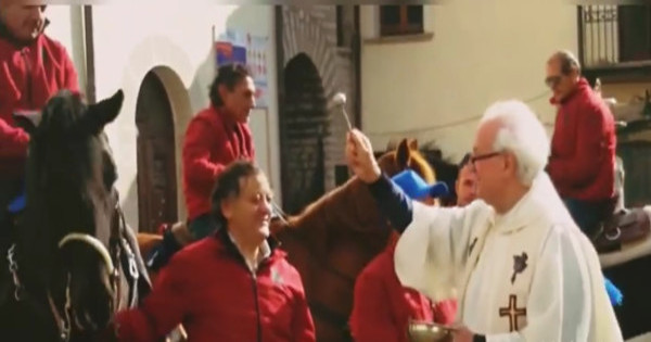 Dopo la benedizione, l’Associazione ha messo a disposizione di tutti i presenti i cavalli (per accarezzarli e scattare foto) in Piazza Matteotti.