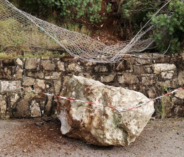 Il masso prima ha divelto la barriera paramassi e poi è caduto sulla carreggiata e si è fermato sulla cunetta ed in piccola parte sulla carreggiata: non ha interessato né persone, né animali e né autoveicoli.