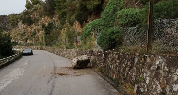 “Si è verificato un distaccamento di un masso dalla collina sovrastante la strada provinciale nel tratto ‘Panoramica’, in corrispondenza della spiaggia del ‘Crivo’, ed immediatamente mi sono personalmente recato sul posto.