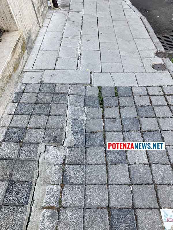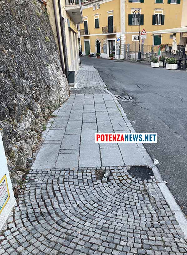 Stessa situazione per il marciapiedi che parte da Piazza Vitolo arriva fino a Fontana Vecchia rattoppato con l’asfalto invece di ripararlo con nuovi sampietrini!