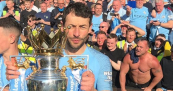 Mario di Pietragalla alza la coppa del Mancester City, Campione di Inghilterra!