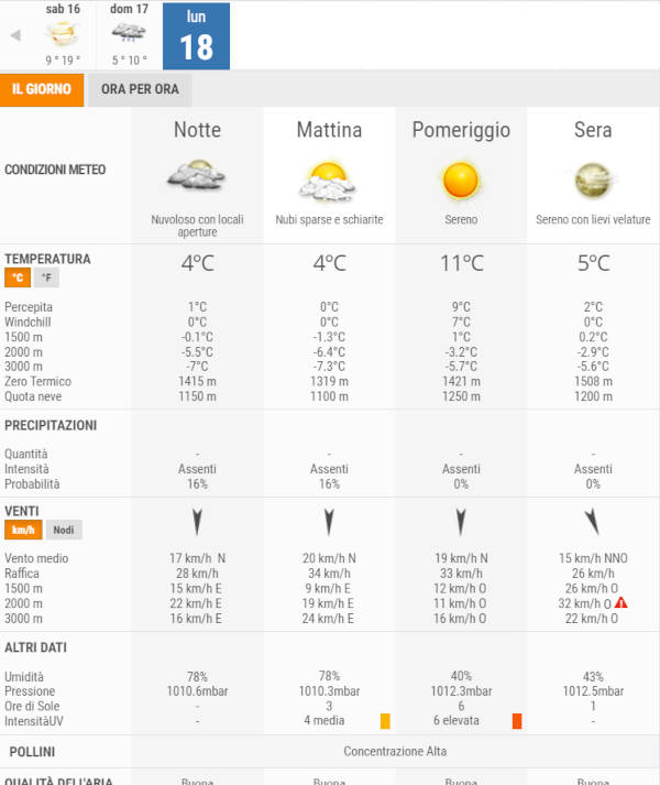 Lunedì 18 Aprile, invece, avremo giornata in prevalenza soleggiata, salvo presenza di nubi sparse al mattino, non sono previste piogge.