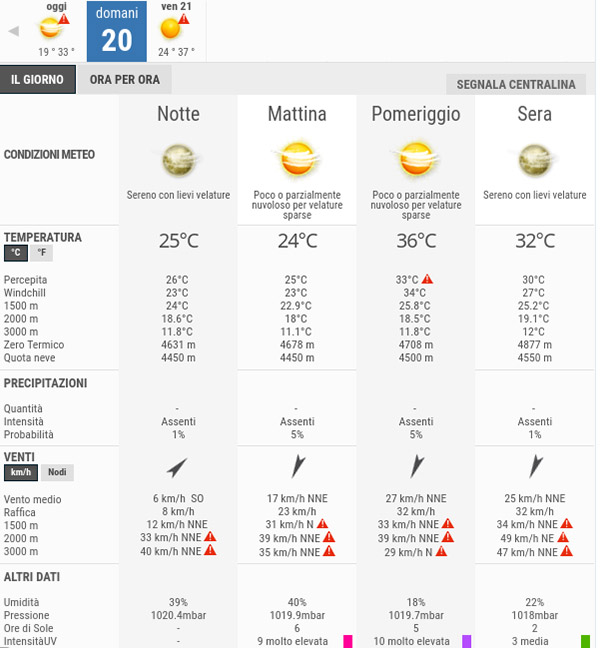 Secondo gli esperti di 3bmeteo, domani, Giovedì 20 Giugno, avremo cieli in prevalenza poco o parzialmente nuvolosi per l’intera giornata, non sono previste piogge.