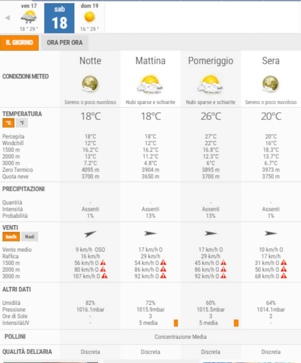 La temperatura massima registrata dovrebbe essere di 26°C, la minima di 18°C.