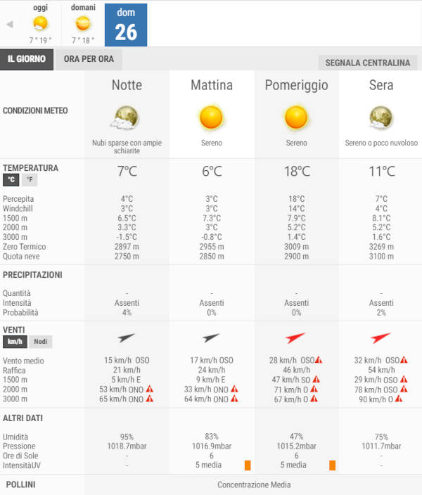 La temperatura massima registrata pare che sarà di 18°C, la minima di 6°C.