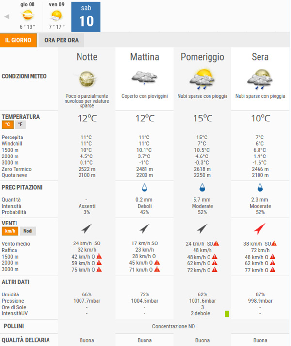 La temperatura massima registrata pare che sarà di 15°C, la minima di 10°C.