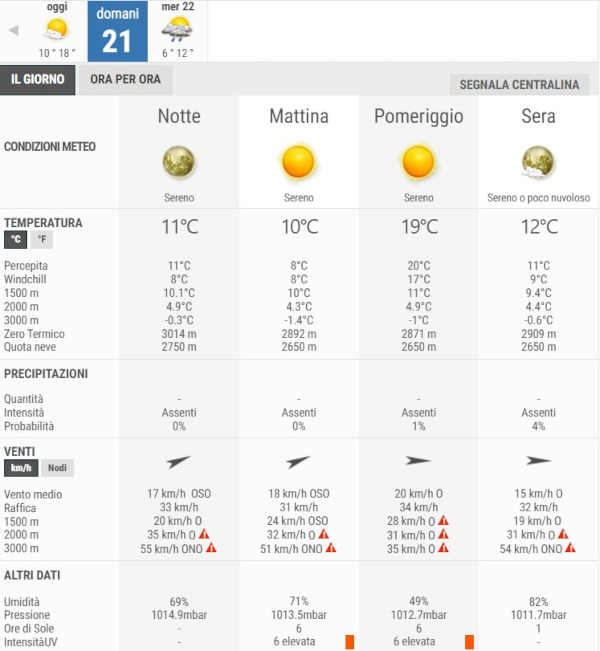 La temperatura massima registrata pare che sarà di 19°C, la minima di 10°C.