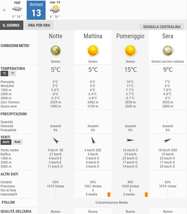 La temperatura massima registrata pare che sarà di 15°C, la minima di 5°C.