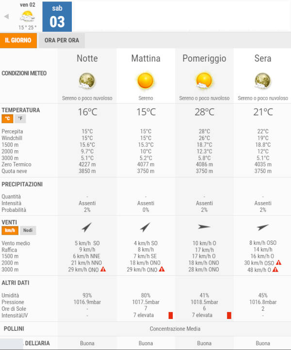 Secondo gli esperti di 3bmeteo, domani, Sabato 3 Settembre, avremo cieli in prevalenza sereni o poco nuvolosi per l’intera giornata, non sono previste piogge.