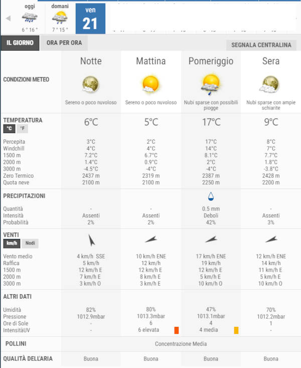 La temperatura massima registrata pare che sarà di 17°C, la minima di 5°C.