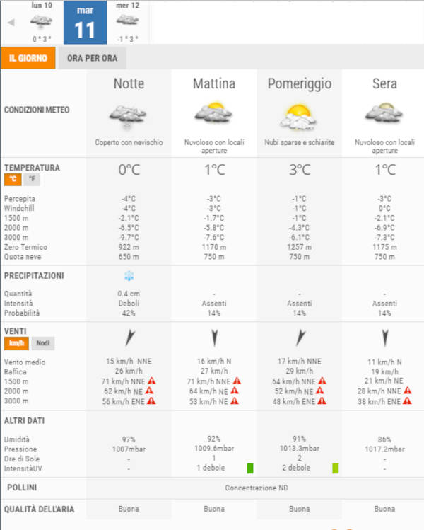 La temperatura massima registrata pare che sarà di 3°C, la minima di 0°C.