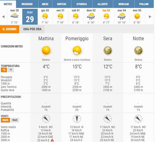 Ecco di seguito le previsioni per domani e i prossimi giorni: le temperature tenderanno ad aumentare fino a 18 gradi mentre le minime rimarranno sui 5-7 gradi, determinando un forte sbalzo termico anche di 10 gradi.