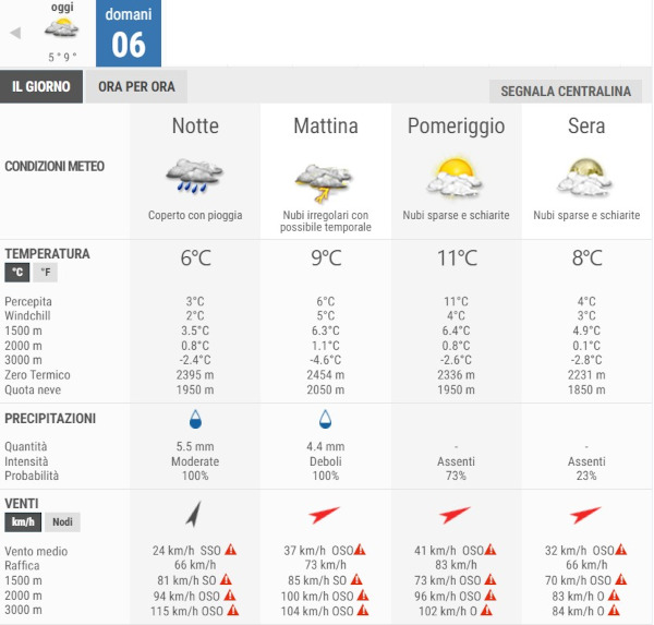 Secondo gli esperti di 3bmeteo, domani Venerdì 6 Febbario, avremo cieli molto nuvolosi o coperti al mattino con piogge e rovesci anche temporaleschi. Assorbimento dei fenomeni nel pomeriggio con schiarite in serata.