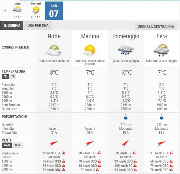 La temperatura massima registrata pare che sarà di 10°C, la minima di 7°C.