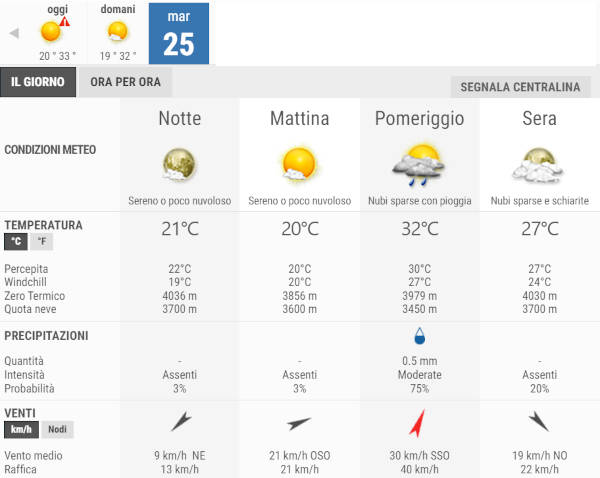 La temperatura massima registrata pare che sarà di 32°C, la minima di 20°C.