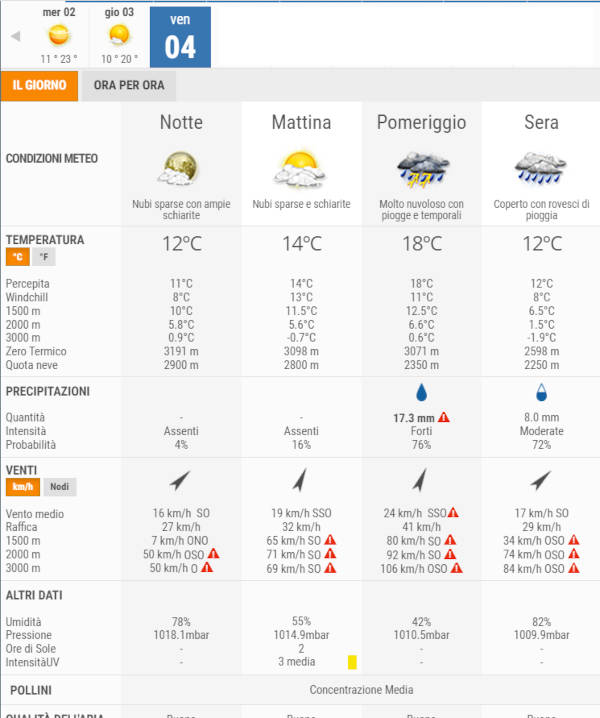 Venerdì 4 Novembre, invece, avremo nubi in progressivo aumento con piogge e rovesci anche a carattere temporalesco dal pomeriggio.