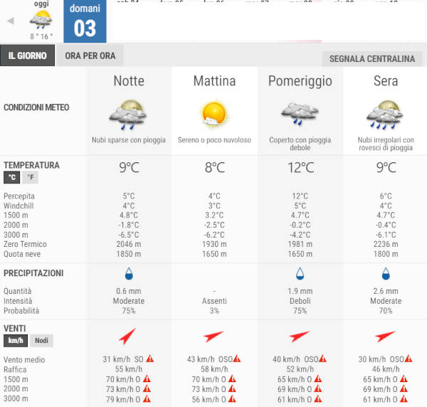 Secondo gli esperti di 3bmeteo, domani, Venerdì 3 Maggio, avremo cieli in prevalenza poco nuvolosi, ma con nubi in progressivo aumento e deboli piogge dal pomeriggio, in intensificazione in serata.
