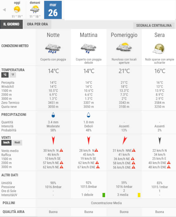 La temperatura massima registrata pare che sarà di 18°C, la minima di 11°C.