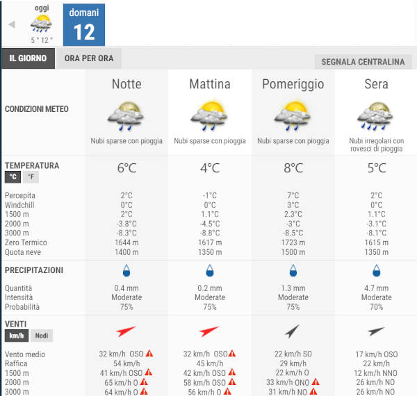 Secondo gli esperti di 3bmeteo, domani, Martedì 12 Marzo, avremo cieli molto nuvolosi o coperti con deboli piogge, in intensificazione dalla sera con rovesci anche a carattere temporalesco.