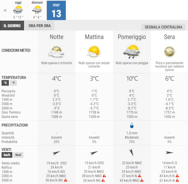 La temperatura massima registrata pare che sarà di 10°C, la minima di 3°C.