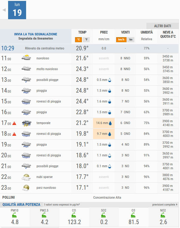 In attesa di ulteriori aggiornamenti, ecco la situazione meteo complessiva su Potenza, con in dettaglio le previsioni per la giornata di oggi.