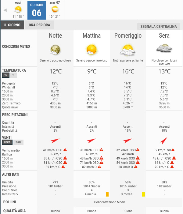 Secondo gli esperti di 3bmeteo, domani, Lunedì 6 Novembre, avremo cieli in prevalenza poco nuvolosi, salvo variabilità dal pomeriggio, non sono previste piogge.