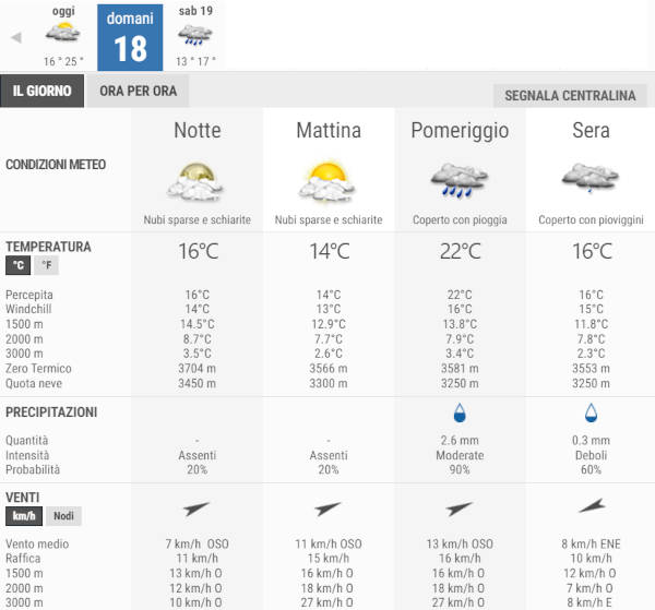 In attesa di ulteriori aggiornamenti, ecco le previsioni per la giornata di domani.