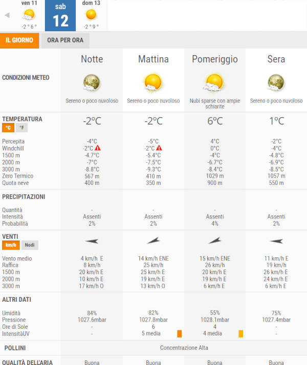 La temperatura massima registrata pare che sarà di -2°C, la minima di 6°C.